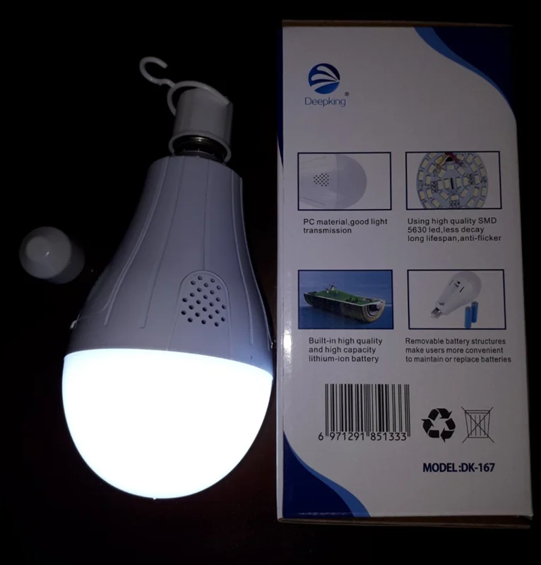 لامپ اضطراری مدل DK167 با توان 18 وات مناسب جهت کمپینگ و یا مواقعی ک برق منزل قطع شده است-لامپ را بصورا عادی میتوانید در هولدر قرار دهید هم بعنوان لامپ معمولا و هم در مدت زمان اتصال باتری ها شارژ شده و میتوان در مواقع بی برقی یا کمپینگ و مسافرت از آن استفاده کرد. این مدل دارای یک آویز میباشد و میتوان آن را در محل دلخواه آویز کرد.