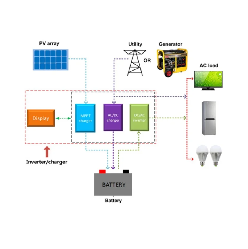 امکان شارژ همزمان یا اولویت دار باتری توسط پنل خورشیدی و برق شهر