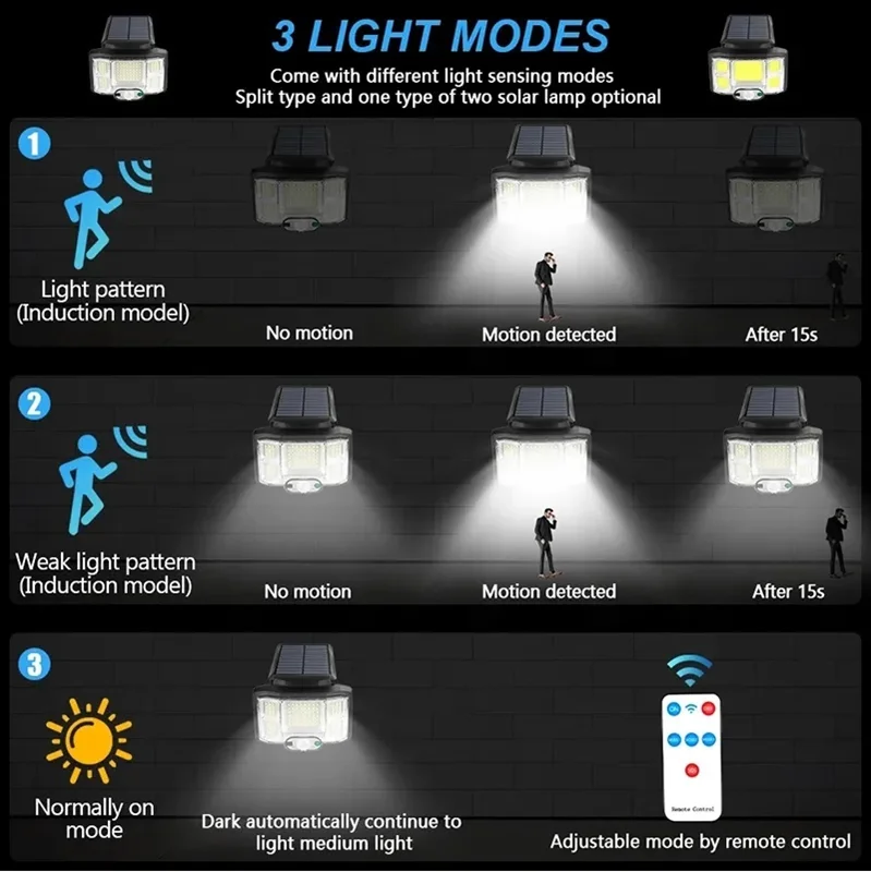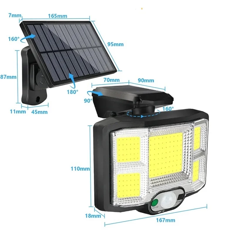 چراغ خورشیدی دیواری سنسوردار مدل JD-2168B-A به دلیل COB بودن نسبت به مدل JD-2168B که smd است نوردهی بیشتری دارد.