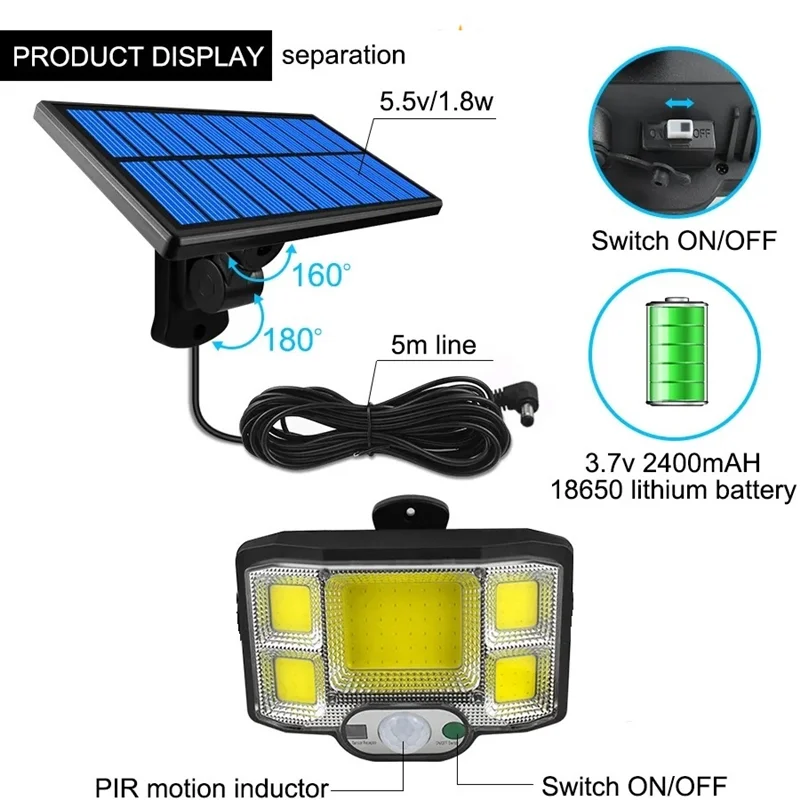 مشخصات چراغ خورشیدی سنسوردار با پنل جدا مدل JD-2168B-A :