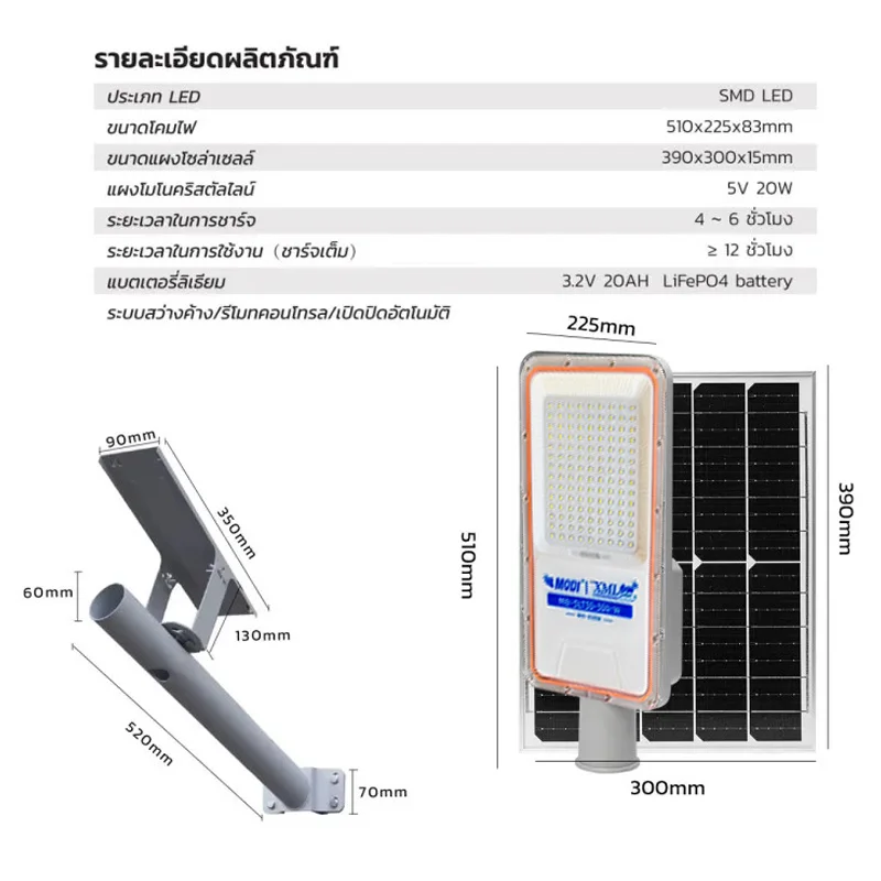 - نوع باتری: لیتیوم یون با ولتاژ 3.2 ولت و ظرفیت 20AH: این باتری قابل اعتماد است و توانایی ذخیره انرژی کافی برای استفاده در شب را دارد.