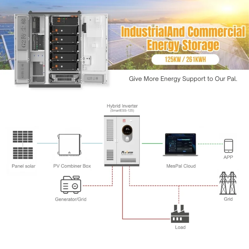 سیستم خورشیدی صنعتی 125 کیلووات با باتری لیتیوم 260 کیلووات SmartESS‑125